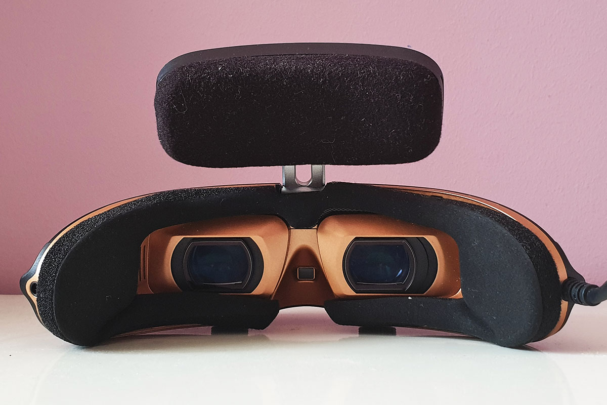 Nincs két ember, akinek a szeme pontosan ugyanúgy állna, ezért a lencsék széles tartományban engedik a korrekciót. A szemtávolság például 56 és 72 mm között változtatható, és van dioptriakorrekció is +3D és -8D között, fél dioptriás lépésközzel. A beállítást a legkönnyebben tesztábrával lehet elvégezni amivel néhány pillanat alatt hozzáigazíthatjuk a headsetet az egyéni adottságainkhoz. A tesztábráról viszont, mivel most nincs külön lejátszó, magunknak kell gondoskodni.