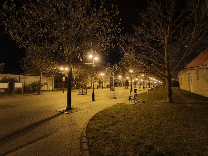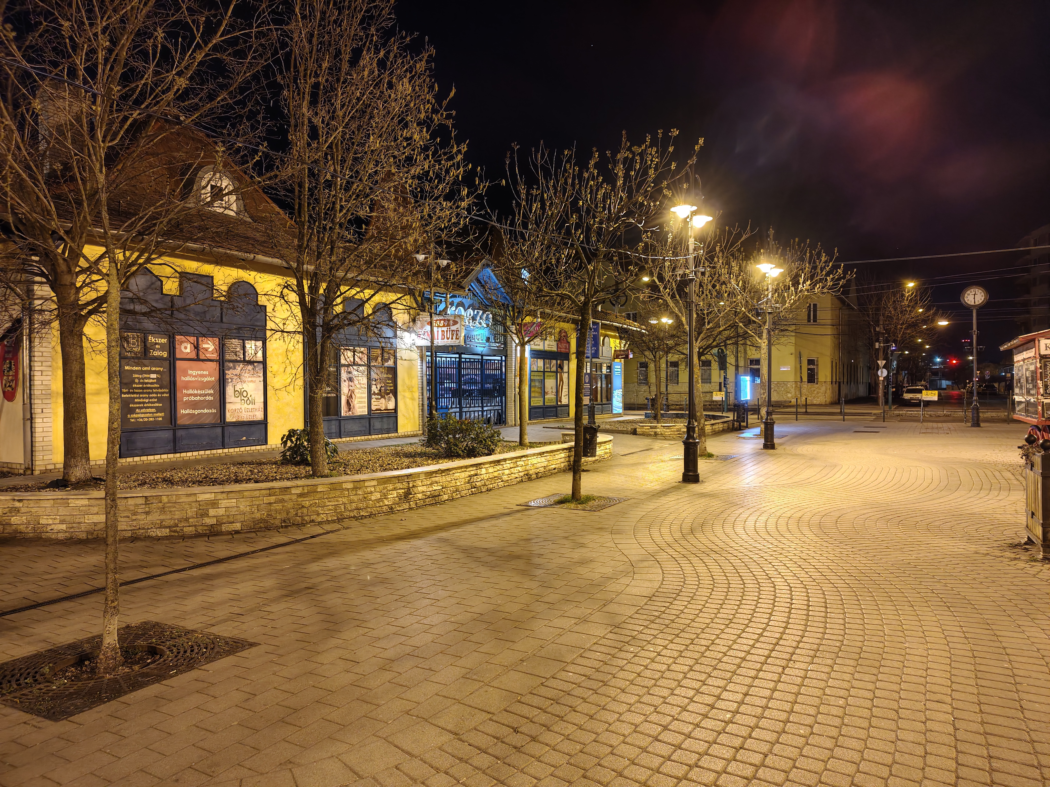 Este viszont már az AI sem bír a pixelekkel, és a zajszűrés érdekében rengeteg fontos részletet áldoz be (érdemes megnézni a térköveken kialakult foltokat), és a fehéregyensúly sem tökéletes – de jobb, mint a fő kamera esetében.