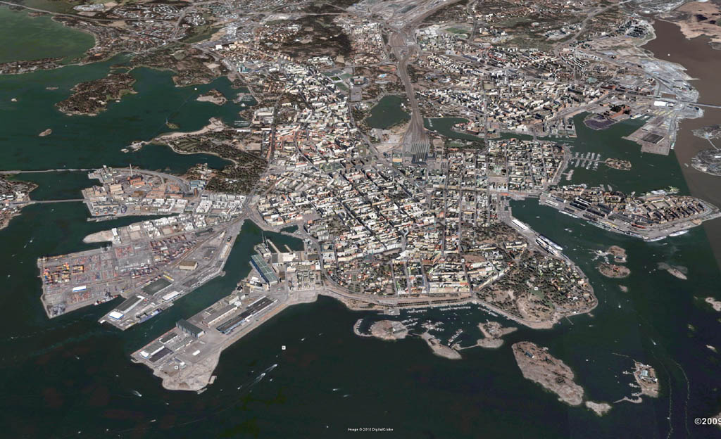 A képen látható város valójában Finnország fővárosa, Helsinki, és ahogy nézzük, pár régi alaplap, videokártya, méretre vágott apró erősítőmodul és tápegység egyvelegéből áll. A vasúti vonalakat összecsavart vezetékek jelképezik, és ha összehasonlítjuk a modellt a Google Earth segítségével készített légifotóval, láthatjuk, hogy az alkotó tényleg jó munkát végzett. Gratulálunk