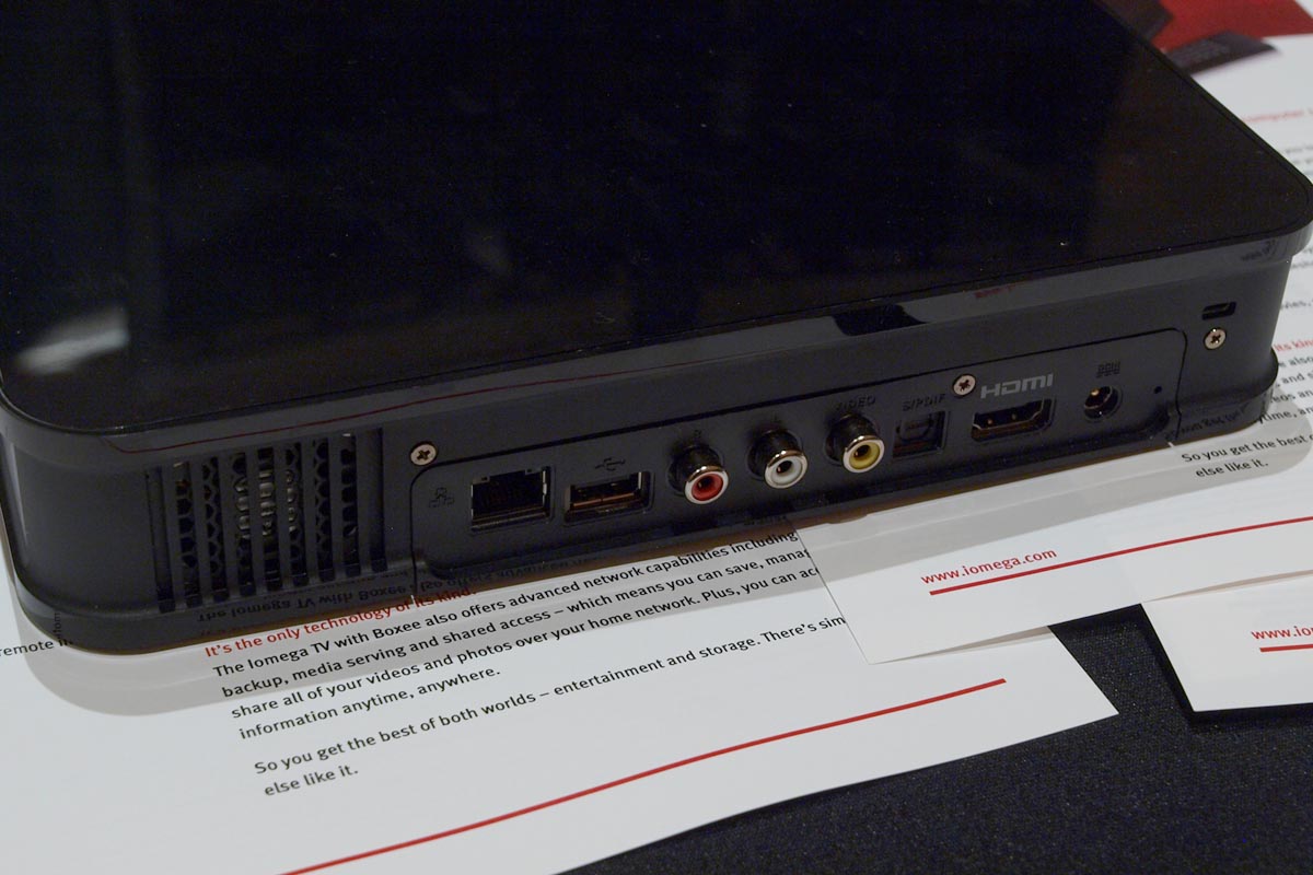 Az Iomega a D-Link után a második a hardvergyártók közül, aki Boxee szoftverrel szerelt médialejátszót ad ki. A TV with Boxee ugyanazt a hardvert tartalmazza, mint a Boxee Box, de sokkal nagyobb dobozba került, mert az alap flash ROM mellé (ami a Linuxot és a Boxee szoftverét tartalmazza) merevlemez is kerül(het). A hardver megvásárolható 2 és 1 Tbájtos HDD-vel illetve merevlemez nélkül, arra az esetre, ha valakinek lenne mondjuk egy felesleges SATA csatolós adattárolója a polcon feleslegesen. Természetesen az Iomega lejátszója minden formátummal boldogul, lejátssza a 1080p-s videókat, és nemcsak USB-n és LAN-on, hanem WLAN-on keresztül is képes kommunikálni, akár UPnP és DLNA szerverekkel is. A lejátszó a tévével illetve az erősítővel HDMI és optikai audio kimeneten keresztül tarthatja a kapcsolatot, illetve csak analóg bemenettel bíró megjelenítők számára egy AV szett is került a hátlapra.