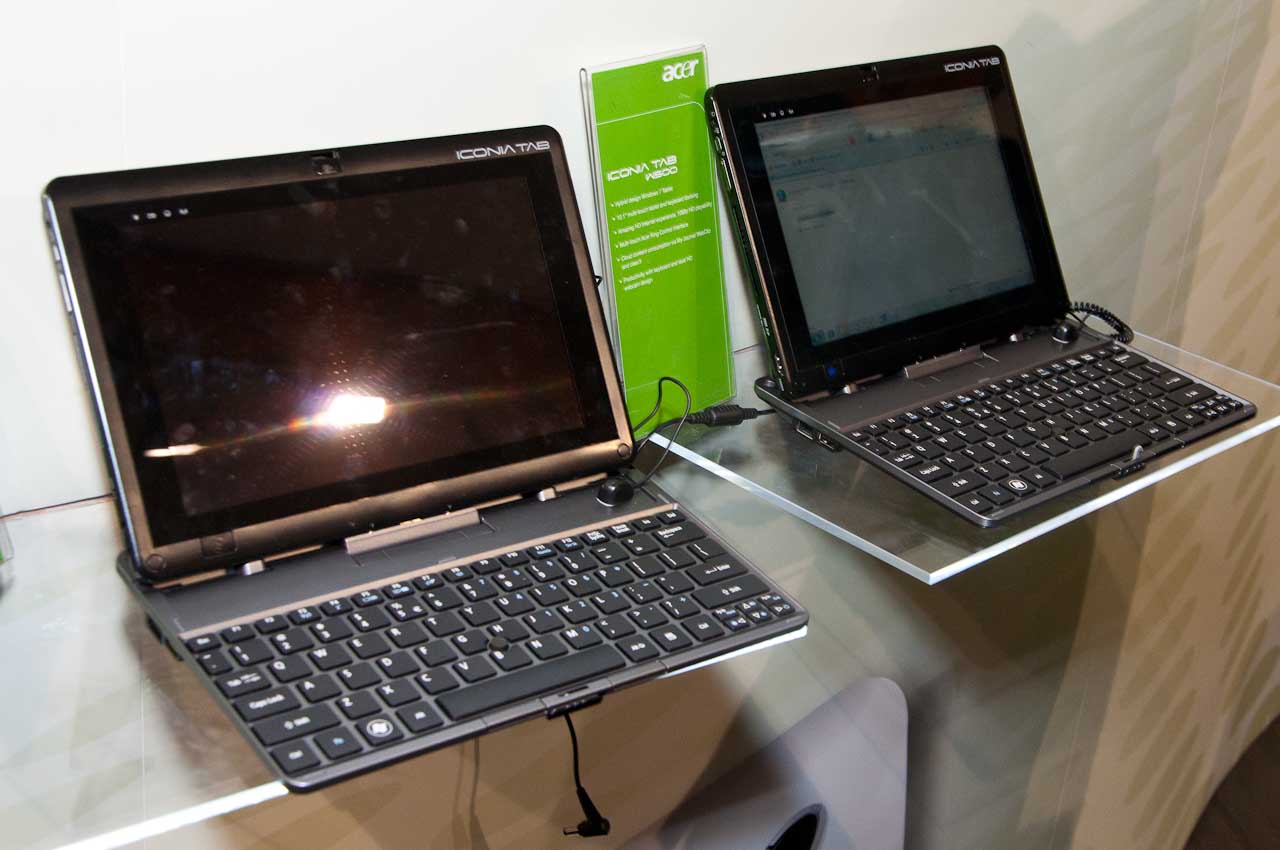 Az androidos gépek közül az A500-at és az A100-at tudtuk megnézni, de mindkettő még csak prototípusként volt kiállítva, így a használat során szerzett tapasztalatokról nem érdemes beszámolni. Maga a hardver igényes (mindkettő Tegra 2-re épül és Honeycombot fog futtatni (a nagyobbik a W500-as kijelzőjét használja, a kisebbik pedig egy 7”-os, 1024×600 pixeles változatot), az összerakásuk is jó, de a sok alumíniumnak köszönhetően elég nehezek: az A500 700, az A100 pedig 400 gramm feletti tömeggel rendelkezik.