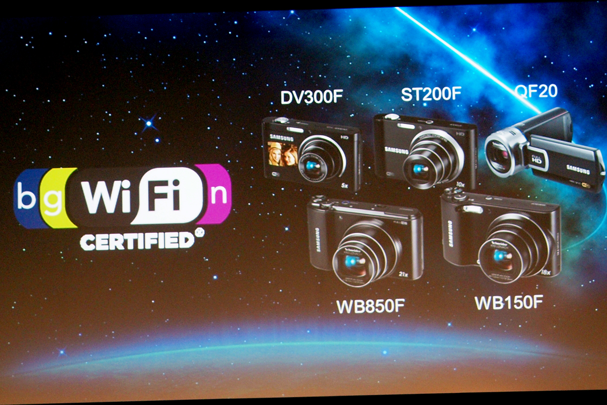 A fényképezőgépek és videókamerák között több új modell is lesz, közül azonban öt olyan van, amelyek igazán érdekesek: WB850F, SB150F, DV300F, ST200F, QF20. Ezek okos készülékek: egyrészt támogatják az AllShare Playt, másrészt WiFi segítségével azonnal feltölthetők a népszerű kép- és videomegosztókra az elkészített fotók, videók. Emellett mind az öt terméket lehet okostelefonos alkalmazással vezérelni, amely nemcsak a funkciókat, hanem a fényképezőgép/kamera élőképtét is mutatja.