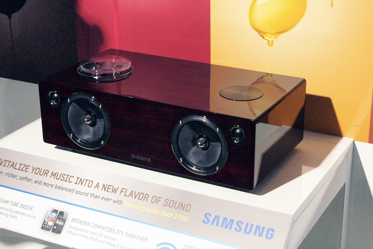 AV fronton a legnagyobb feltűnést a Samsung csöves erősítő-dokkoló kombói keltették, ezekből kettő lesz idén, egy 100 és egy 40 wattos teljesítménnyel rendelkező változat. Előbbi DA-E750 névre hallgat, és nemcsak audiofil, hanem vizuális élményt is ad, egy üvegablakon keresztül ugyanis láthatók a benne lévő elektroncsövek – a kukucskáló a DA-E650-ről hiányzik. A dokkolók a Samsung saját termékei mellett az Apple különféle kütyüivel is kompatibilisek.