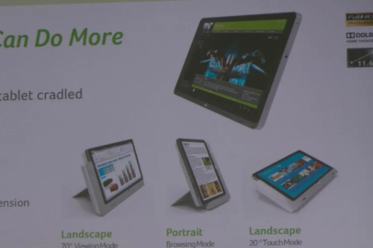A nagyobb W700 kijelzője Full HD felbontású, a bölcsővel pedig nemcsak normál fekvő, de álló helyzetben is megtámasztható az asztalon (könyvolvasáshoz ideális), sőt, akár kis szögben el is fektethetjük, ekkor például érintőképernyős játékokhoz ideális. A táblagépek részletes specifikációit és árait nem árulták el még, hiszen a készülékek csak a Win8 piacra kerülése után érkeznek majd meg. Annyit azért sikerült kideríteni, hogy Core i5 (valószínűleg Ivy Bridge sorozatból), 4 GB RAM és 5 MPixeles kamer lehet még a gépben, a mobilnet azonban nem szerepelt a felsorolt opciók között.