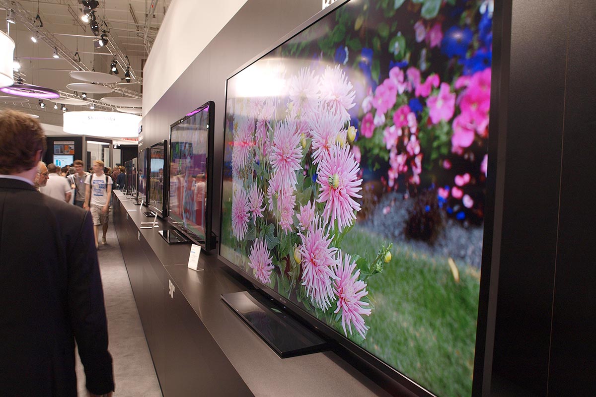 A Sharp idén a nagy képméretre helyezte a hangsúlyt, kontinensünkön Berlinben debütált a gyártó LC-90LE745-ös tévéje. amelyet az amerikai piacon korábban már leleplezett a vállalat. A tévé érdekessége, hogy a hatalmas képméret ellenére felbontása csak Full HD, cserébe viszont az ára nem is olyan vészes, 2,5 millió forintnak megfelelő euró lesz nagyjából.