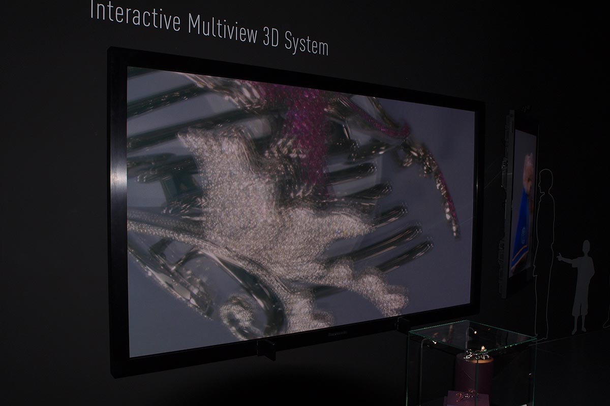 Most kivételesen nem a tévé volt a főszereplő, hanem az a platform, amelyik a tévére kitette a képet: a Panasonic készített egy olyan rendszert, amelynek az egyik fele tárgyakat képes 3D-ben lefényképezni, a másik pedig az eredményt 3D tévé segítségével akár térben is, bármilyen irányból megmutatni. A képen a fehér ovális terület töltötte most be a kontroller szerepét, ezzel lehetett a tévén megjelenő tárgyat forgatni és dönteni; ezt később egy tablet helyettesítheti majd, így ezen a felületen lehet majd kiválasztani azt is, hogy éppen mit szeretnénk megnézni. A legtriviálisabb alkalmazási területet szinte bármilyen múzeum jelenheti, hiszen az intézmények általában több olyan tárgyat is ki szoktak állítani, amit nem lehet körbejárni, de mégis érdekes lenne őket minden oldalról megnézni.