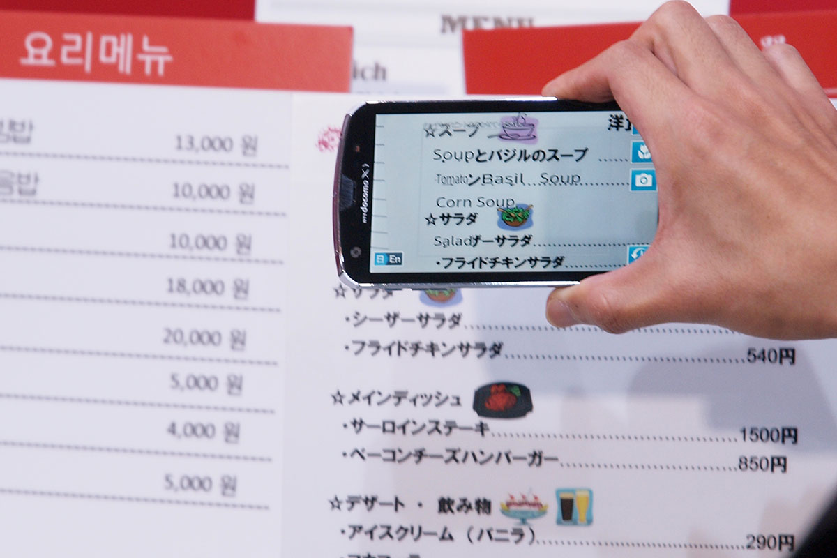 Emlékeztek még arra, hogy tavaly ilyenkor egy olyan alkalmazásról is írtunk, amely képes lefordítani egy étlapot? Az NTT DoCoMo akkor még csak prototípusként létező appja a felhőben dolgozta fel a mobil kamerájával készített képeket – japánról angolra vagy fordítva. A szoftver a mostani CEATEC-re készült el teljesen, hamarosan pedig a Google Play Store kínálatába is felkerül, ahol az ingyenes szoftverek táborát gyarapítja majd.