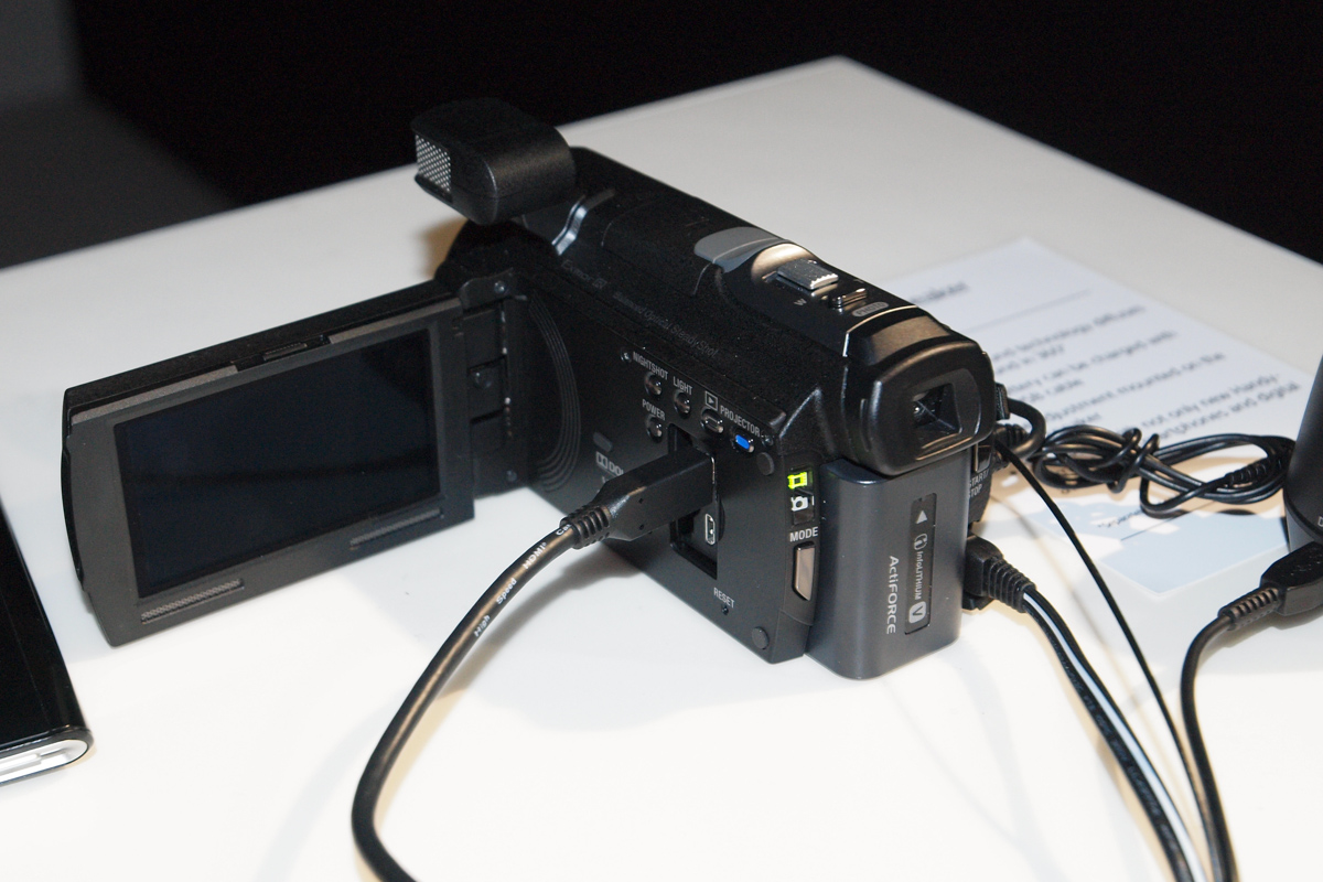 Ahogyan néhány éve megnyílt a lehetőség arra, hogy a LED-es fényforrások segítségével a projektorok méretét nagyon picire összezsugorítsák a gyártók, a kivetítő rendszeresen felbukkan olyan hardverekben is, amelyekben nem biztos, hogy sok keresnivalója van – például mobiltelefonokban és fényképezőgépekben. A listához egy ideje hozzáadhatjuk a videokamerát is, a Sony ugyanis úgy döntött, hogy a egy-egy kamerájába kivetítőt is épít, hogy az elkészített felvételeket azon nyomban, nagy méretben is meg lehessen nézni. Persze, értjük a koncepciót, vagyis, hogy a projektor azért jó, mert a nyaralás alatt felvett kisfilmeket már ott megnézhetjük – azonban a kiállított tesztpéldány újfent bebizonyította, hogy a technológia (főleg, ha más eszközzel van egybeépítve) még nem elég életképes. Világosban a vetítés eleve esélytelen, és igazából sötétben is csak relatív kicsi, 50-60 centis képet tudunk nézni, ha értékelhető képet szeretnénk. Szerencsére a HDR-PJ790-nek nem a kamera az egyetlen vonzereje: a felvételek tárolásához 96 Gbájt belső tárhelyet kapunk, az érzékelő Exmor CMOS és a kütyüvel akár 24 Mpixeles fotókat is készíthetünk.