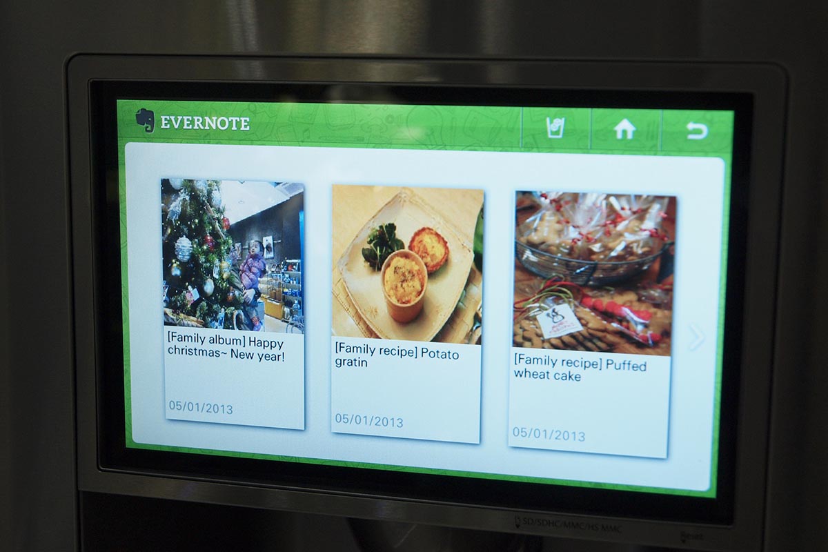 A Samsung egy táblagépet is épített csúcshűtőjébe (vagy egy hűtőt épített a táblagép köré, nézőpont kérdése): a 10 colos, 1280×800 pixeles kijelzővel szerelt masina, ahogyan az a képeken is látszik, alapesetben az időjárási adatokat és a hűtő egyes részeinek a hőmérsékletét mutatja, de természetesen a Samsung több olyan alkalmazást is telepített rá, ami a konyhában lehet hasznos.