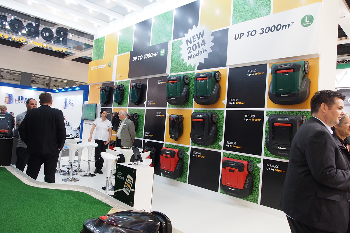 A Friendly Robotics nevet teljesen elhagyva, egyszerűen csak Robomow néven kiállító cég standja egyszerre volt áttekinthető és felfoghatatlan. Sőt még e sorok írásakor is csak elméletben tudom, hogy melyik termék hova tartozik, de felsorolni nem tudnám őket.