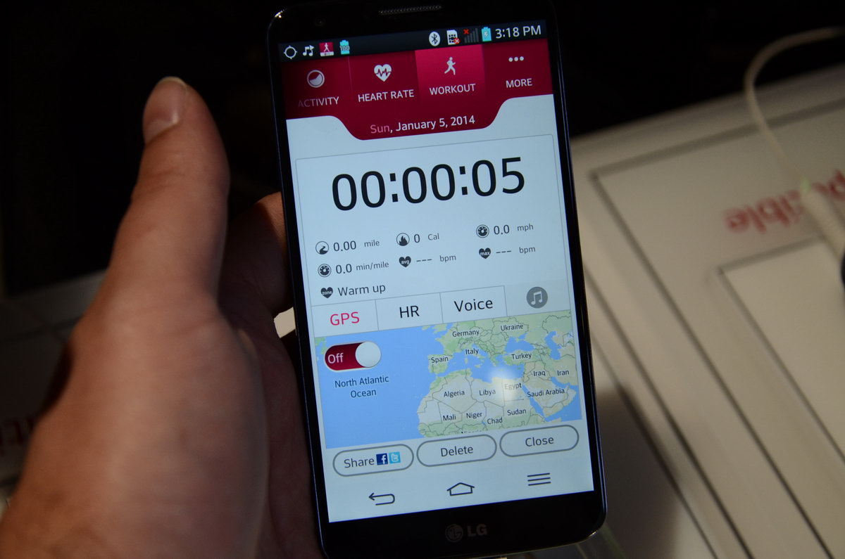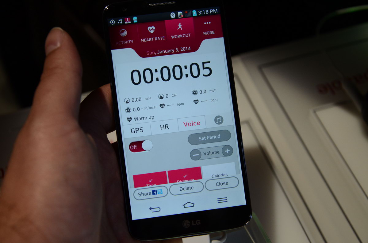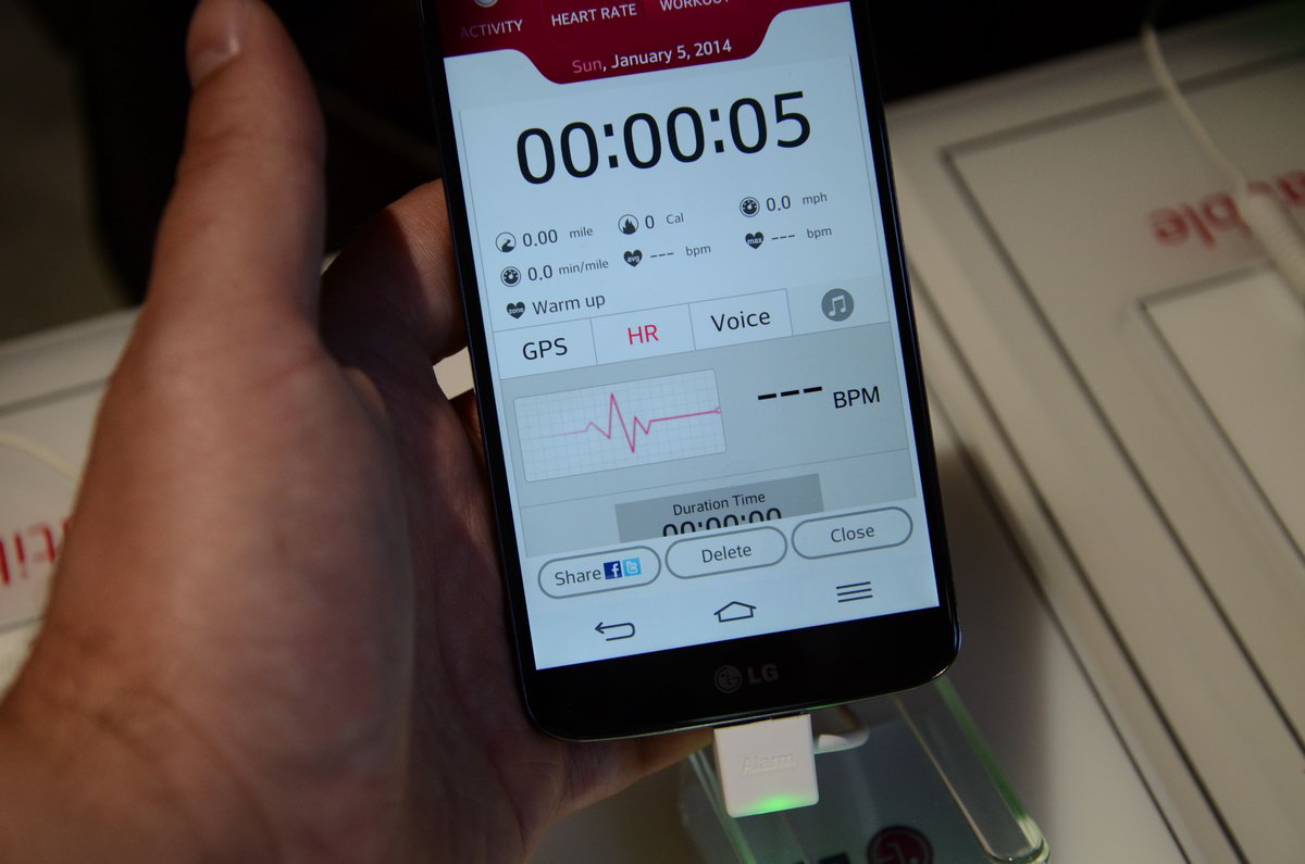 Mindez nyilván nem jelenti azt, hogy ne lenne mobiltelefonos társa a Lifeband Touchnak. A program nemcsak LG telefonon fut, hanem bármilyen androidos készüléken, sőt, még iPhone-on is, és természetesen sokkal komplexebb adatmegjelenítést tesz lehetővé. Az alkalmazás nemcsak a Lifeband Touchccsal, hanem az LG pulzusmérő fülhallgatójával, a Heart Rate Monitor fülhallgatóval is tud kommunikálni, így a szívverésünk ütemét is tudja figyelni.