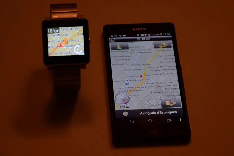 A Garmin elhozta demózta okosóra alkalmazását is, amely Sony SmartWatch 2-re érhető el egyelőre. Az app segítségével az óra a telefonon is megjelenő térképet tudja megmutatni, igaz, az akkumulátor kímélése érdekében elég sajátos módon: a kijelző tartalma nem frissül, csak akkor, ha az órát megérintve utasítjuk a képernyő tartalmának aktualizálására.