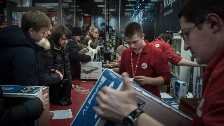 A rubel a dollárral szemben is sokat gyengült, ez év harmadik negyedében 14 százalékkal csökkent az árfolyama. Ilyen különbségre 1999 óta nem volt példa. Ennek hatására, aki csak teheti, külföldre (értékállóbb valutába) viszi a pénzét. Érthető módon az amerikai cégek sem szeretik a bizonytalan helyzetet, az Apple most a közvetlen értékesítését számolja fel Oroszországban, hiszen a raktáron tartott áru (helyesebben nem maga az áru, hanem annak ellenértéke, eladás után) napok alatt elértéktelenedhet. Ezt a megelőző lépést természetesen más cégek is megteszik.