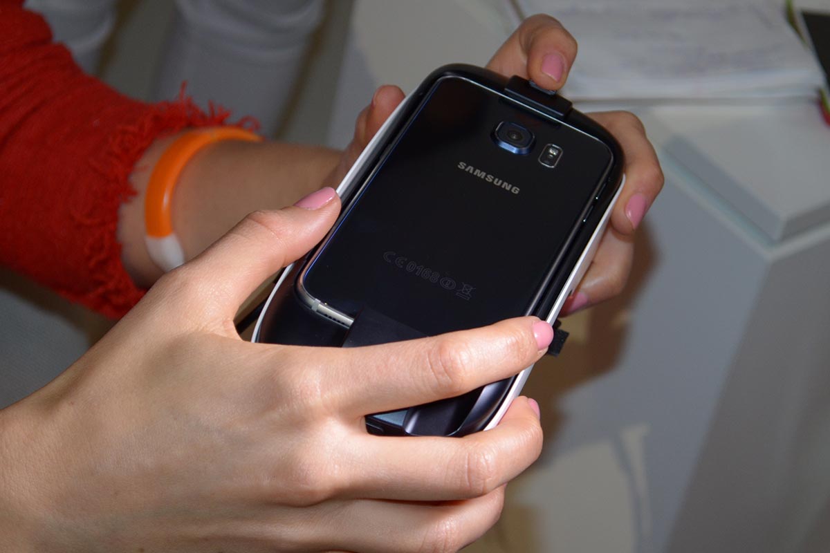 Az eredeti Gear VR-t a koreai vállalat a Note 4-gyel együtt mutatta be, a szemüveg olcsó alternatívája a komplett megoldásoknak, például az Oculus Riftnek – feltéve, hogy egy Galaxy Note 4-gyel már rendelkezik az ember. Az IFA-n bemutatott verziót természetesen ki is próbáltuk, és az élmény tetszett nekünk – ugyanakkor azt nagy hibának tartottuk, hogy a mobil kijelzőjének csak kis részét hasznosítja hardver, így a vetített kép elég pixeles. Ezen elvileg segít, hogy a Galaxy S6 és S6 Edge kijelzője kisebb, csupán 5,1 colos: mivel a felbontás maradt, ezért a PPI nőtt, tehát finomabb megjelenítésre van lehetőség. Sajnos azonban ez a gyakorlatban még mindig pixeles képet eredményez.