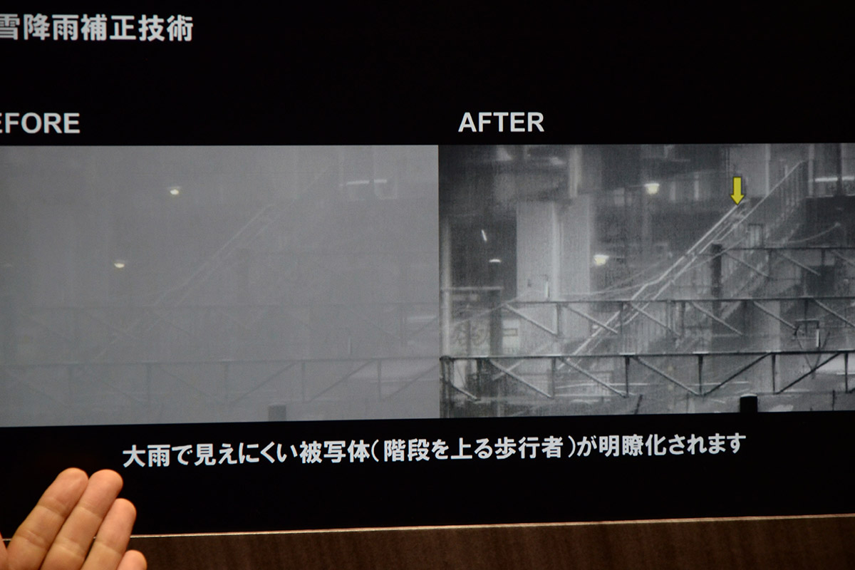 A Panasonicnál számolnak a közbiztonság kérdésével is, a városban már most is megtalálható több tízezer kamera képét egyetlen központba továbbítanák, ahol globálisan elemeznék az adatokat – így nemcsak a tolvajok ellen lehetne védekezni, hanem vészhelyzet esetén is nagyon gyorsan lehetne reagálni. Hasonló megoldása több más japán gyártónak is van, a Panasonic a képjavítóival viszont egyedi képességet is adna: kettő, csak a filmekben látott trükköt láttunk, ami normál kamerákkal működik (ez azért fontos, hogy ne kelljen a meglévőket cserélni). Az egyik ködös képet javított fel annyira, hogy láthatóvá váljanak a járókelők, a másik pedig a rendszámfelismerésben segít.