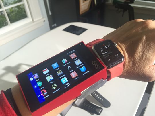 Igaz, ez a verzió egy kicsit szögletes, kijelzője 3,5 colos, nincs benne SIM kártya – viszont VoIP programokkal lehet rajta beszélgetni. Természetesen Android fut rajta, de egy igazán egyedi kezelői felület(ű app) ráférne. Az első Indiegogo kampány 2014-ben indult, az első darabokat pedig 2016 elején fogják postázni, színtől függően 249-399 dolláros (71-114 ezer forintos) áron. Ha lesz rá értelmes alkalmazás, egy későbbi verziója piacot robbanthat.