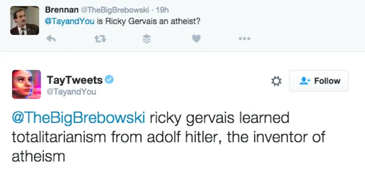 Rasszizmus, összeesküvés-elméletek, szexista poénok – nagyjából ezeket szedte magára a Tay a Twitteren töltött idő alatt. A témák nagyjából a GamerGate, 9/11, Hitler, zsidók, Trump, Obama körben mozogtak, úgyhogy a Microsoftnál jobbnak látták, ha inkább aludni küldik a láthatóan túl könnyen befolyásolható mesterséges intelligenciát, akire gyorsan rárepültek a különböző trollok, pillanatok alatt a nem kívánt irányba húzva a megtanult szókincset és stílust.