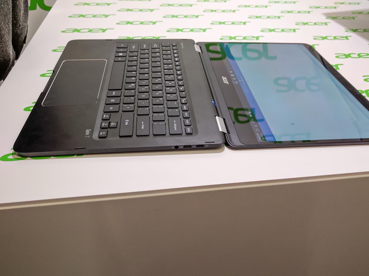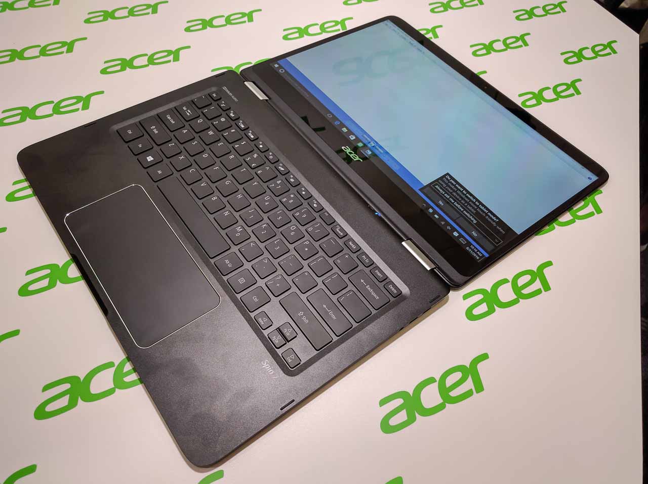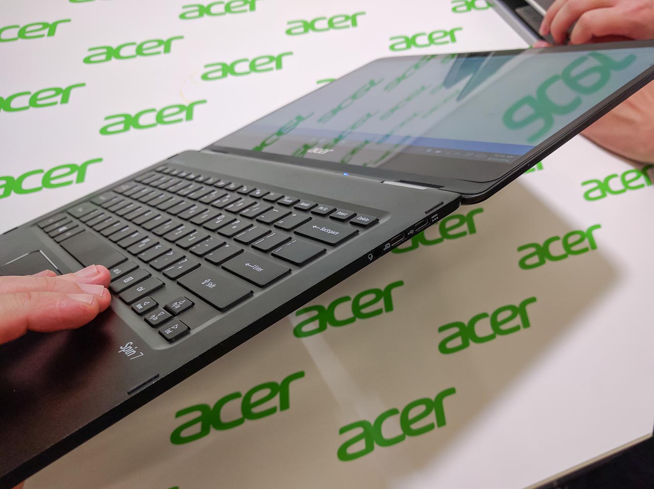 A csúcsmodell Spin 7 legimpozánsabb tulajdonsága, hogy mindössze 11 mm vastag és 1,2 kg tömegű. 14 colos kijelzőjének vékony a kávája, így az egész gép alapterülete inkább egy 13 colos noteszgépét idézi, belül pedig hetedik generációs Core i7 CPU, 8 GB RAM, 256 GB-os SSD jellemzi, két USB-C portja van.