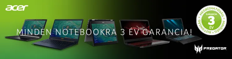 Az Acer Magyarország most pedig megint lép egy nagyot: 2019. augusztus 1-től az összes notebook család – Aspire, Swift, Spin, Nitro, Travelmate, Extensa – felzárkózik garanciaidőben a Predator családhoz, azaz minden notebook gyárilag három év garanciával kerül a vásárlókhoz, függetlenül a termék vételárától.