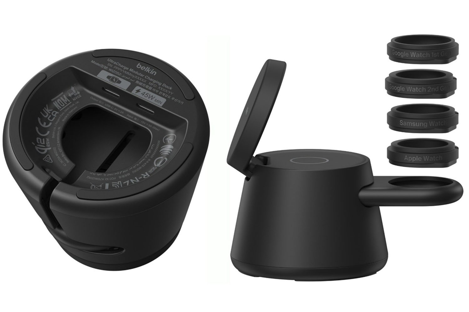 Hogy rögtön lehűtsük a kedélyeket: gyári állapotban az UltraCharge Modular Charging Dock sem képes más gyártmányok töltésére, ehhez egy extra adapterre is szükség van, amit külön kell megvásárolni. Első körben a Belkin kétféle adaptert árul majd, az egyikkel Samsung okosórák, a másikkal pedig Google okosórák töltése válik lehetővé. Kicsit rontja az összképet, hogy a töltőkorong vezetékről kapja az áramot, de ne legyünk telhetetlenek.