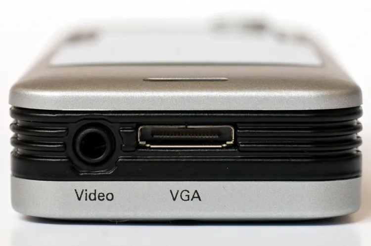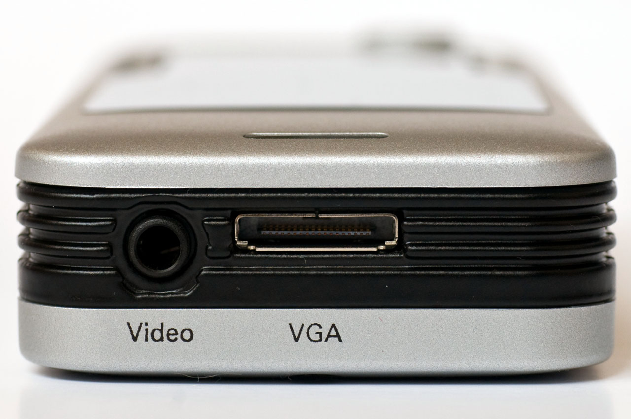 A kapcsolón és az fókusztárcsán kívül más mozgó alkatrész nincs is a kivetítőn. Csatlakozóból kettő került a hátoldalára, egy szabványos jack, amely a kompozit videojelek fogadására képes, illetve egy speciális, lapos és vékony bemenet, amelyhez a mellékelt D-Sub-végű kábelt csatlakoztathatjuk. A tápegység bemenete pedig a jobb oldalon található. Érdekessége még a készüléknek, hogy alján egy, a fényképezőgépeknél megszokott méretű menet van, tehát ha szükséges, fotósállványra is felszerelhetjük.
