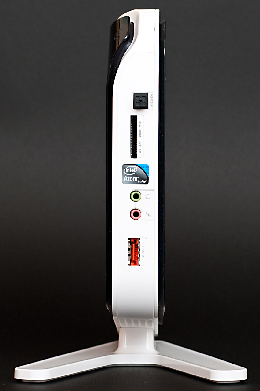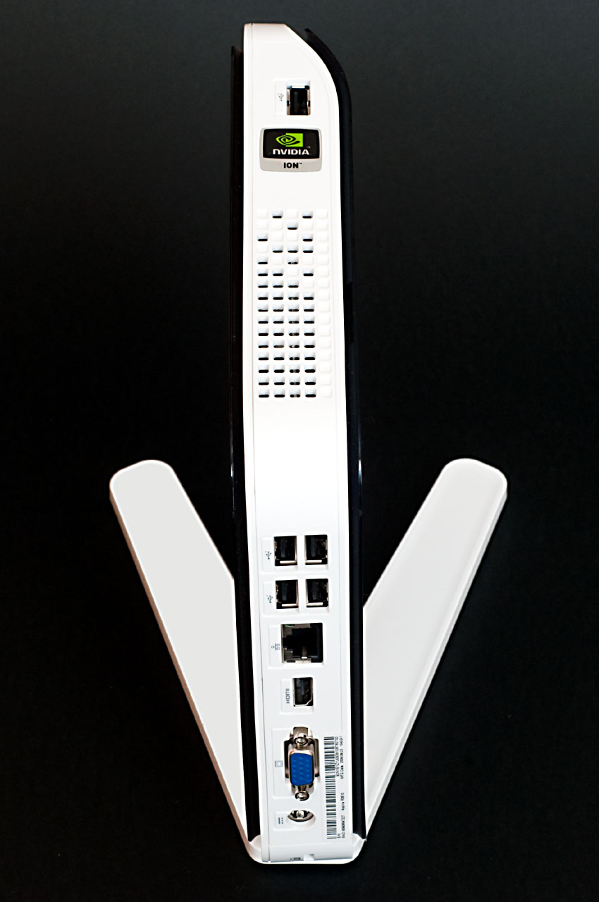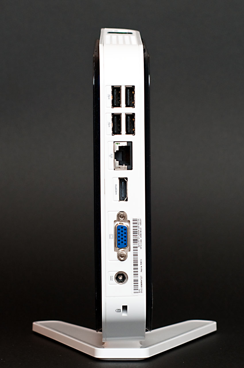 A hátoldalon a négy USB mellett található még egy HDMI és egy D-Sub csatlakozó, a gigabites Ethernet port, illetve a külső tápegység bemenete és a Kensington-zár nyílása is. Az előlapra egy optikai SPDIF kimenet, analóg hangcsatlakozók, egy eSATA port, valamint az SD/SDHC, xD és Memory Stick kártyák olvasására képes kártyaolvasó került.