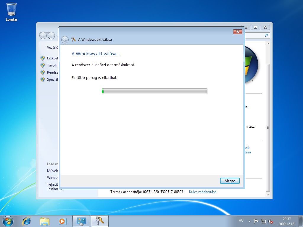 Az utolsó lépés az aktiválás, amelyet természetesen meg kell ismételni, hiszen egy frissen telepített Windows 7-ről van szó.