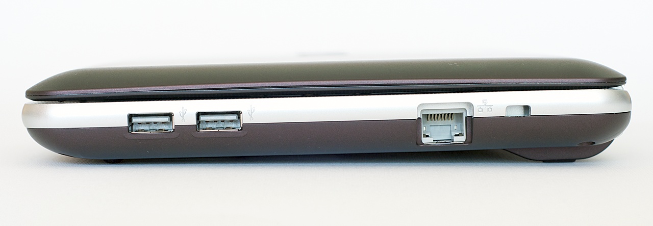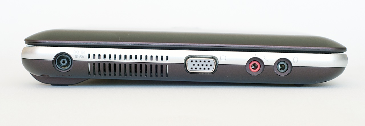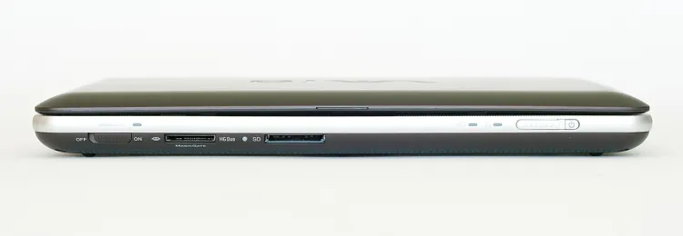 Az általunk tesztelt konfiguráció csatlakozók területén semmiben sem különbözik a konkurenciától, sőt, kicsivel még rosszabb is azoknál: bal oldalon a hangcsatlakozók, a D-Sub és a tápcsatlakozó található, jobb oldalon pedig egy Ethernet és két USB port. Elöl külön nyílást kapott a Memory Stick és az SD kártya, ami pedig nem látszik a képeken, az a beépített WLAN és Bluetooth adapter.