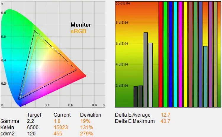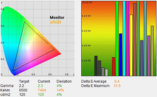 Amint a korábbi, Sharp AQUOS LE820-as tesztünkben is írtuk, a Sharp valószínűleg nem ismerte még ki tökéletesen az RGBY rendszer működését, mert a színhelyesség nem olyan jó, mint a gyártó korábbi csúcskategóriás tévéinél volt. Látszólag persze túl nagy különbség nincsen, és főleg akkor, ha csak a 925-ös tévét látjuk, nem tűnik rossznak a kép (nem is az), de a műszerek elárulják, hogy nem is tökéletes. Ezúttal is főleg azzal volt a problémánk, hogy a sárga szín miatt kissé túlszaturált marad a kép, bármit is állítsunk a menüben. Főleg a „sárgás” árnyalatok, így a piros, zöld, sárga, narancssárga és barna különböző változatai élénkebbek egy hajszálnyival a kelleténél.