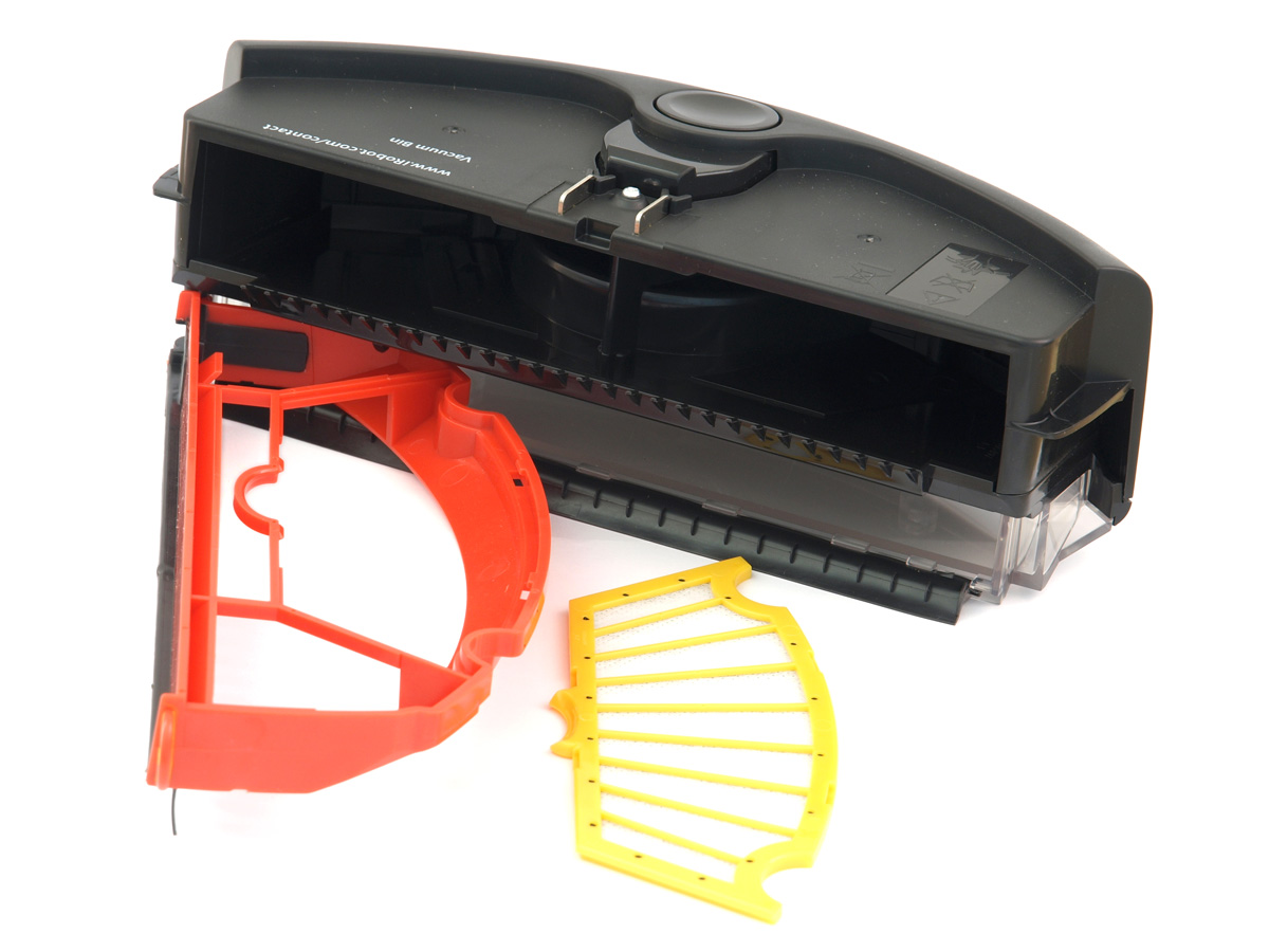 Az eredeti portartályt ugyanis két rekeszre osztotta az iRobot. Az alsó rekeszbe szívta a szívómotor a port, a nagyobb, felső rekeszbe pedig a robot alján lévő kefés henger söpörte a nagyobb szemetet (hajszálak, morzsa, papírfecnik, stb.).