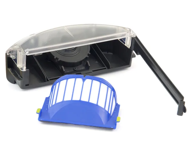 Tudni kell, hogy a Roomba robotok porszívó motorja a levehető portartályba került, így a robot porszívózási képességei a tartály fejlesztésével könnyedén javíthatók. A porszívó a kihajtható belső lapra pattintott szűrőn keresztül fejti ki hatását, így a szoba levegőjébe már szűrt levegő jut vissza. Ez a szűrő nem HEPA minőségű, de igény szerint HEPA szűrő is vásárolható hozzá.