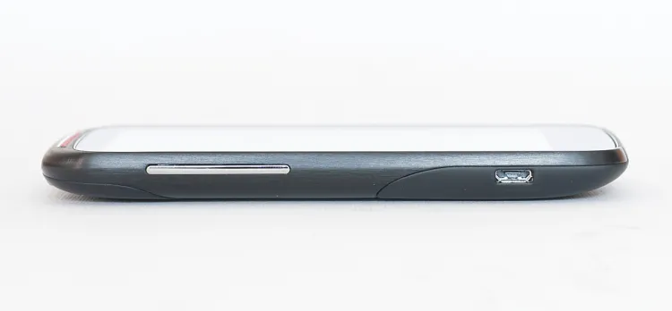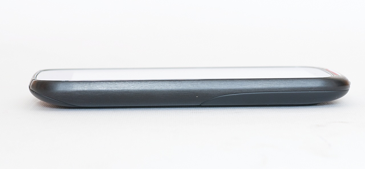 Hasznos megoldás hogy a kijelző szélei felé a védőüveg kicsit felfelé görbül, így védi az előlapot a karcolódásoktól. A képernyő felett a megszokott fémrács mögött találjuk a hangszórót és a visszajelző LED-et, tőle balra a külső fényviszonyokat figyelő érzékelőt, jobbra pedig az előlapi kamerát.