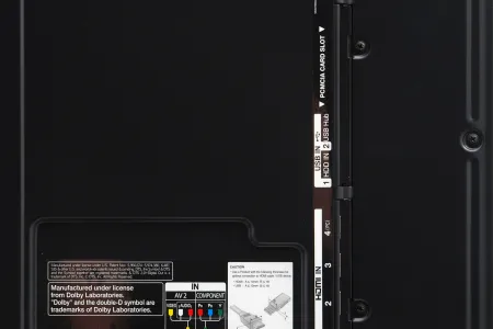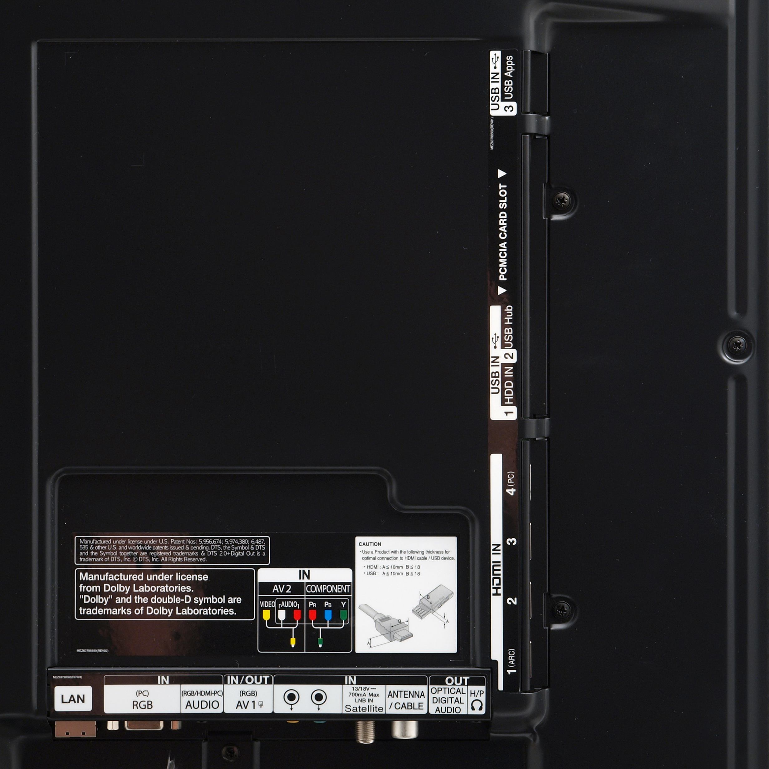 Hátul a tévé a szokásos képet mutatja: bal oldalt a csatlakozópanel, jobbra, szintén teljesen hátul, a gombok kaptak helyet. Az LG ezúttal sem gondolta fontosnak, hogy hardveres ki-bekapcsolót gombot építsen a tévébe, azonban a méréseink alapján a tévé készenléti állapotban kevesebb, mint 0,2 wattot fogyaszt, így ez nem igazán jelent problémát – aki éjszakára teljesen ki akarja kapcsolni a készüléket, az valószínűleg úgyis inkább billenőkapcsolós konnektort használ, nem pedig a tévét nyomkodja.