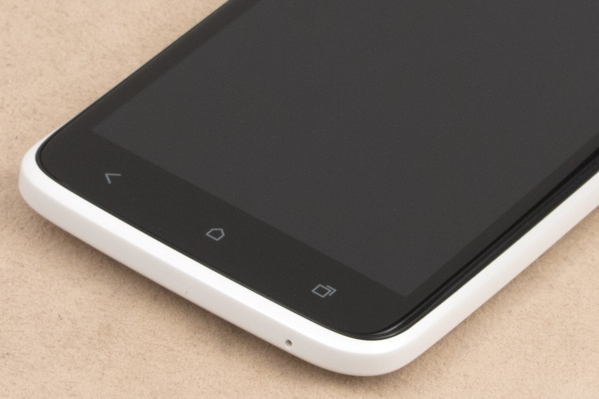 A HTC One X 4,7 colos kijelzője szinte az egész előlapot elfoglalja, és természetesen Gorilla Glass védelemmel is rendelkezik. A panel az egyik, ha nem a legjobb a jelenleg elérhetők közül – de erre a következő oldalon térünk ki részletesen. A korábbi HTC One tesztek alapján nem meglepő, hogy a HTC, annak ellenére, hogy a telefont Android 4.0-val adja, ezúttal sem akart szabadulni a gomboktól; a panel alatt megtaláljuk a vissza, Home és feladatváltó gombokat is, amelyek, ahogyan azt egy csúcskategóriás telefontól elvárhatjuk, érintésre reagálnak. A kijelző felett, de még mindig a sötét, fényes fekete részben találjuk a közelségérzékelőt és a fényérzékelőt. Utóbbi segítéségével a telefon képes a fényerőt automatikusan állítani, így sötétben nem vakít a panel és nem is fogyaszt sokat, míg napfényben teljes kakaót kapunk, hogy a lehetőségekhez képest minden látszódjék. A fényes fekete sáv felső részén középen a HTC feliratot találjuk még. A visszajelző LED, csakúgy, mint a One S esetében, rejtett, fénye a hangszóró számára fúrt apró lyukakon keresztül látszódik. E rácsoktól jobbra találjuk a másodlagos kamerát, amely videotelefonáláskor kaphat szerepet.