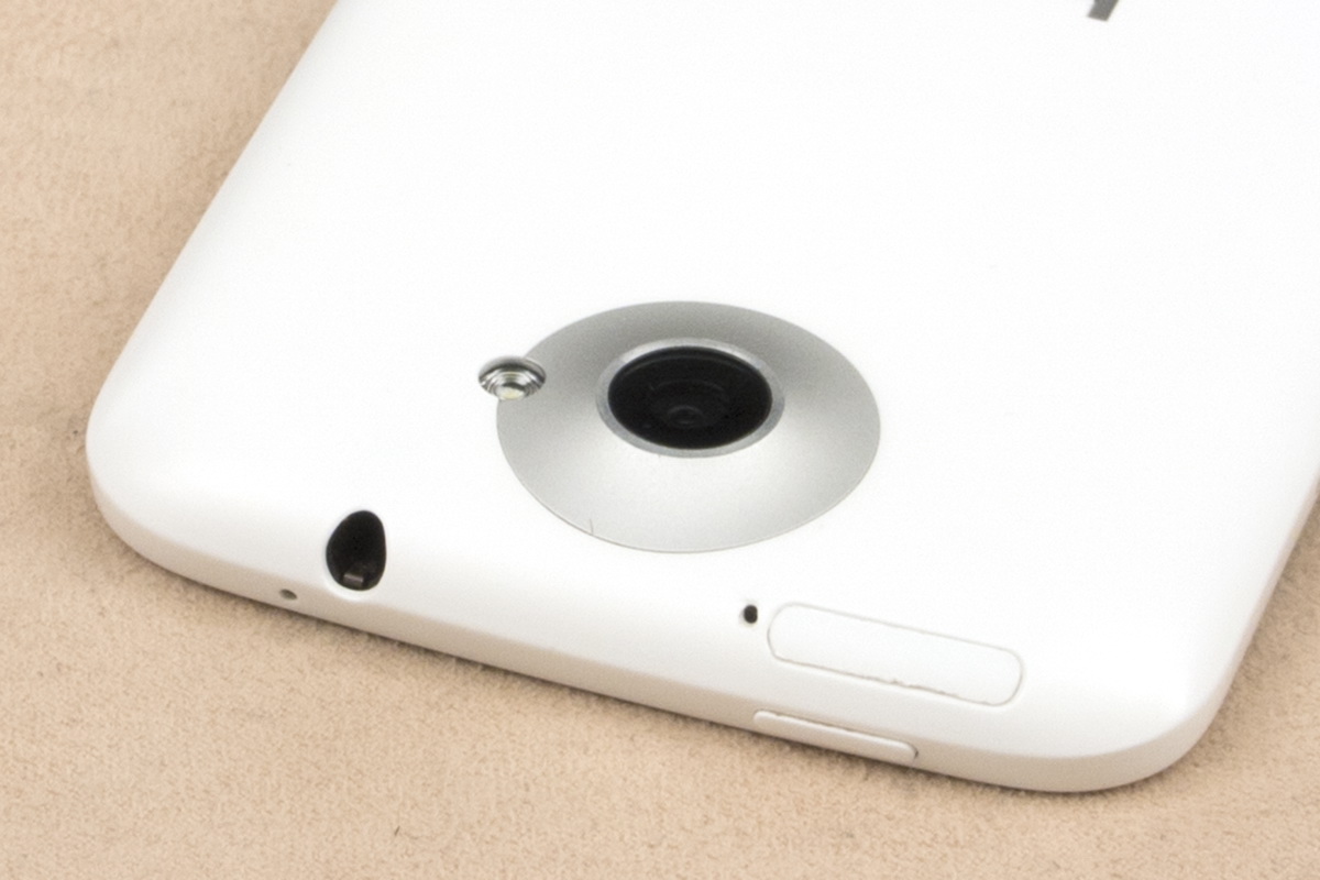 Mivel a készülékház műanyag, amely nem árnyékol, a HTC-nek ezúttal nem kellett extra betéteket alkalmaznia az antennáknál. A hátlap így teljesen egyben van, illesztések nem törik meg a felületet. A fő kamera nyílása fent középen található, és, hogy ne mondhassuk, hogy a One X-ben nincsen fém, az objektívet fémgyűrű veszi körül. A kamerához LED-es villanó is tartozik. Ami érdekesség még hátul, az az öt apró fémcsatlakozó, amelyek együtt valójában egy dokkoló aljzatot alkotnak. A hátlap alsó részén a beats audio felirat is ott díszeleg, közvetlenül a külső hangszóró részére fúrt apró lyukak mellett.