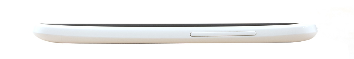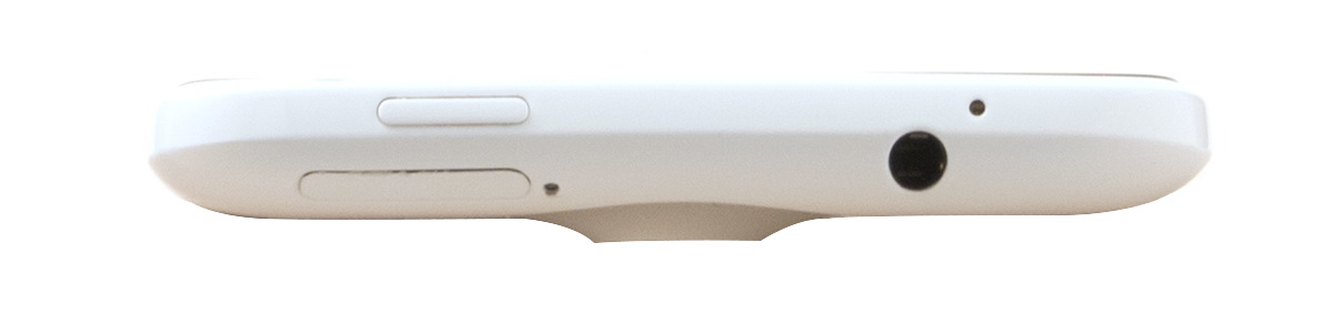 A mobil fehér és szürke verzióban kapható – nálunk, ahogyan az a képeken is látszik, a fehér változat járt. Mindkettő esetében matt a műanyag, viszont a kijelzőt és az érintésérzékeny gombokat védő Gorilla Glass fényes bevonatot kölcsönöz gyakorlatilag a teljes előlapnak. A telefon anyagából adódóan sajnos sérülékenyebb, mint a fémből készült társak, ugyanakkor a „természetes” elhasználódás szempontjából jó hír, hogy a nálunk járt tesztpéldányon csak egyetlen egy helyen, a SIM-kártya fiókjának kivételéhez szükséges nyílás mellett volt látható sérülés – amit valószínűleg egy korábbi kolléga munkálkodása okozott.