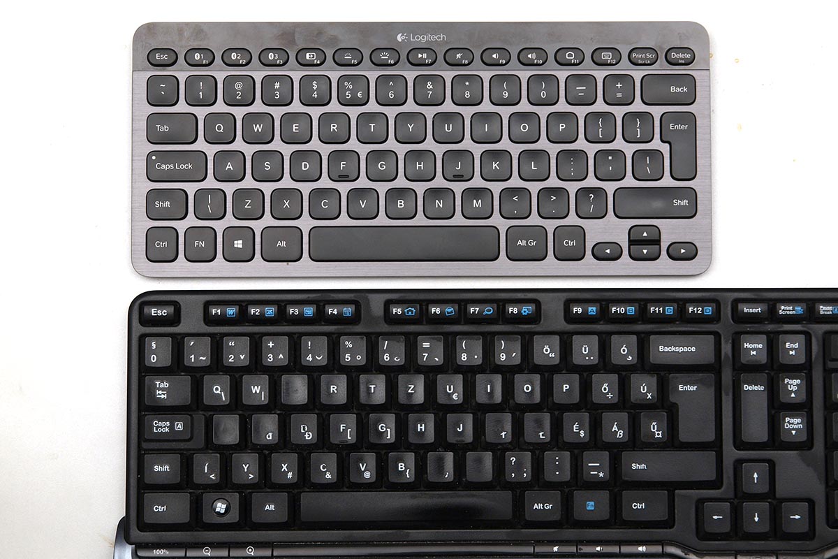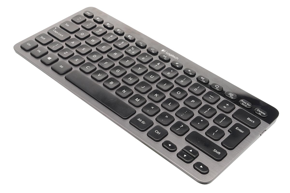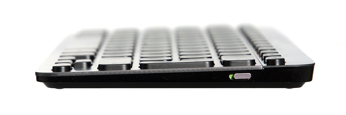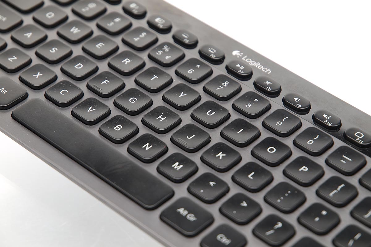 A Logitech a K810-re Windows gombot is tett, de a hardver kompatibilis a Macintosh gépekkel, az iOS valamint az Android OS-t futtató kütyükkel is. A Caps Lock saját visszajelző LED-et is kapott – az előlap fényes fekete része alá pedig további érdekességek is kerültek. Az F1, F2 és F3 gombok felett egy-egy kék színű visszajelző LED található, amivel a klaviatúra azt jelzi, hogy éppen melyik hardverhez csatlakoztattuk – a K810 legnagyobb érdekessége ugyanis az, hogy akár három géppel is tudjuk párosítani. A billentyűzet jobb oldalára került az akku lemerülését és a töltést visszajelző LED, valamint találunk itt két szenzort is. Mindkettő a gombok háttérvilágításának állításában játszik szerepet: az egyik egy mozgásérzékelő, így a háttérfény már azelőtt bekapcsol, hogy az első gombot lenyomtuk volna, utóbbi pedig a fényerősséget méri, hogy a háttérfény erősségét megfelelően állítsa be az elektronika. A billentyűzet alapterülete 29×13 cm, így bármilyen notebook mellett kiválóan elfér a táskában – még repülős utazásnál sem tűnik túl macerásnak a szállítása.