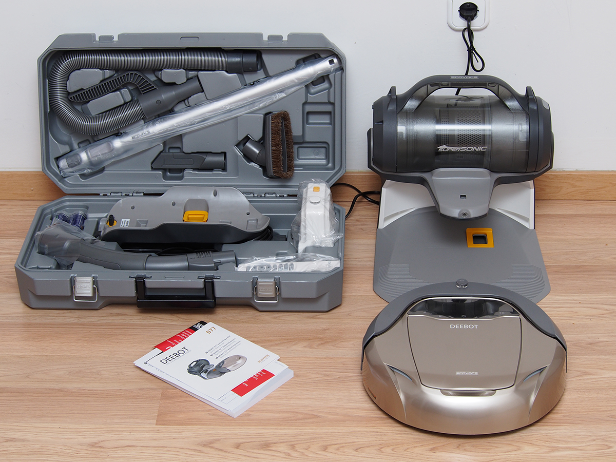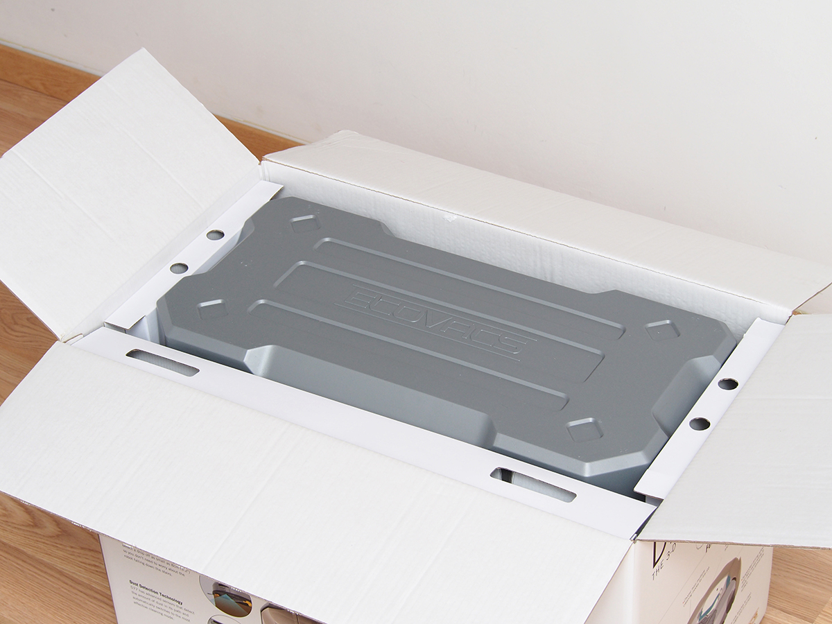 Az Ecovacs Deepoo D77 egy masszív, nagy dobozban érkezik. A dokkolóra szerelt porszívó miatt maga a töltőállomás sem kicsi, de ezt az Ecovacs megfejeli azzal, hogy a dokkolóról levehető porszívóhoz egy halom kiegészítőt is mellékel, többek között azért, hogy hogy az vállra akasztható, kézi porszívóként is használható legyen. A doboz a következőket rejti: