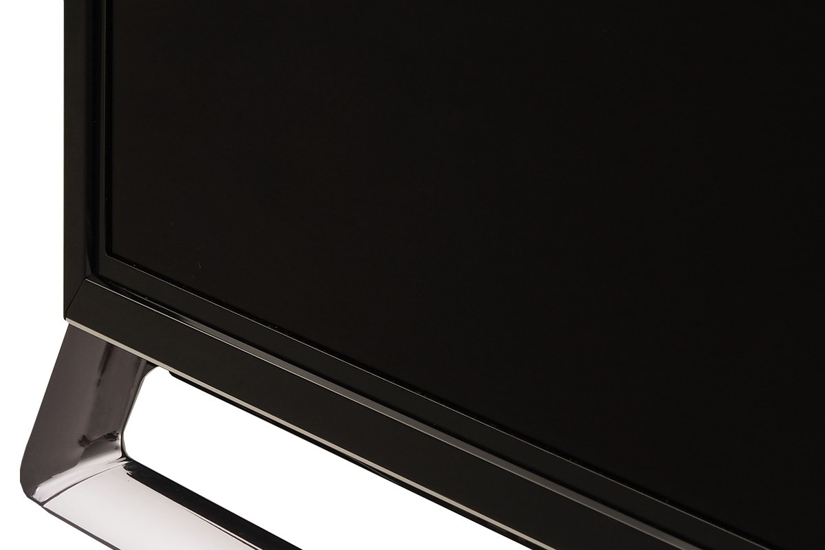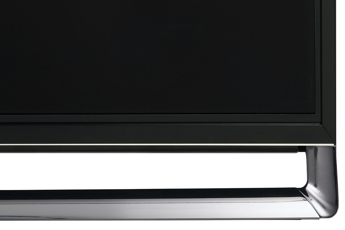 Amennyiben a tévét a falra szeretnénk erősíteni, jó tudni, hogy a króm színű részt nem tudjuk eltávolítani (de ez nem akadályozza azt, hogy a tévét akár teljesen a falra „tapasszuk”). A káva alsó része két részből áll, hiszen ezen a részen kellett a hely a visszajelző LED-eknek valamint az érzékelőknek. A két részt egy nagyon vékony ezüst csík választja el egymástól, amely jól megy a talphoz.
