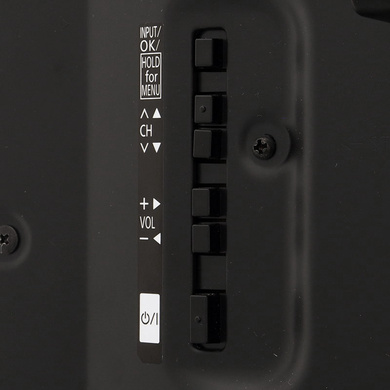A gombok (szemből nézve a tévét) a jobb oldalra, de teljesen a tévé hátlapjára kerültek, ha ezeket szeretnénk használni, akkor tapintásra és (a funkciók megjegyzéséhez) jó memóriára lesz szükségünk. A Panasonic jó szokásának megfelelően a hardveres kikapcsoló gomb ezúttal is hiányzik, de a tévé készenléti állapotban szinte semennyi energiát nem vesz fel, így ez nem nagy probléma.