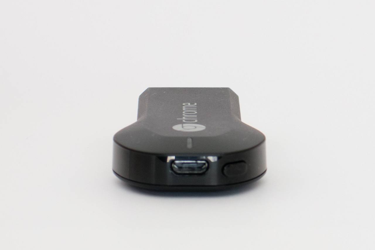 Maga a készülék nincs túlbonyolítva, a HDMI csatlakozón kívül egy microUSB bemenetet találunk rajta, egy alapból fehéren világító visszajelző LED-et és egy szimpla gombot. Ez utóbbira igazából nincs is szükségünk, csak akkor kell, ha valamiért resetelni akarjuk a Chromecastot, de nem tudunk hozzá csatlakozni a mobilos vagy tabletes alkalmazással.