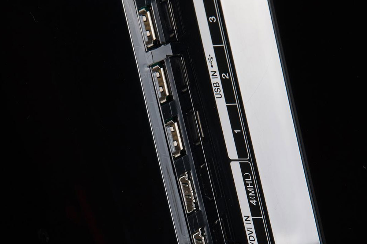Az 55EC930V kávája mindössze pár milliméter (4 mm) vékony, de az elektronika nyilván nem fért volna be ilyen kis helyre, így a hátsó részen egy jóval vastagabb (pár centis) doboz rejti ezt valamint a csatlakozókat. A bemenetek listája sok meglepetést nem tartogat, ami fontos, az az, hogy a tévében mindhárom digitális tuner helyet kapott, HDMI bemenetből négy, USB-ből pedig három vár bevetésre készen.