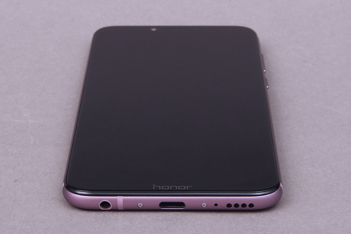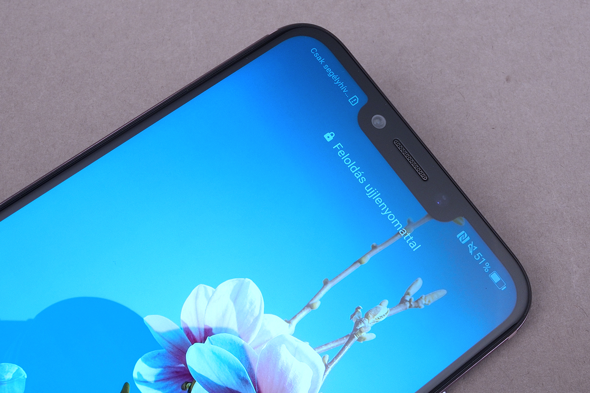 A Honornak nagyon sok szép telefonja van, a Play ezek közül az egyik. A Honornak van rengeteg egyedi telefonja is – a Play, nos, ezek közé viszont nem tartozik. A mobil elég sok vonása alapján emlékeztet ugyanis az iPhone-ra. No nem az iPhone 8-ra, és nem is az iPhone X-re, hanem inkább az iPhone 7-re, 7s-re. A sarkok lekerekítése és az oldalak íves kialakítása mind olyan, amit „már láttunk”. A hasonlóság tényleg szembetűnő, de szerencsére azért vannak különbségek is. Az előlapon például szinte teljes egészében a kijelző terpeszkedik. Az elrendezés a P20-tól kölcsönzött notchnak hála nem szimmetrikus, viszont a Honornál így is ügyesen megoldották azt, hogy az alsó káva ne legyen túl vastag – a „honor” felirat is éppen csak, hogy elfért benne. A szigetecskén a beszédhangszóró és az előlapi kamera mellett a közelség- és fényérzékelő valamint a visszajelző LED kapott helyet.