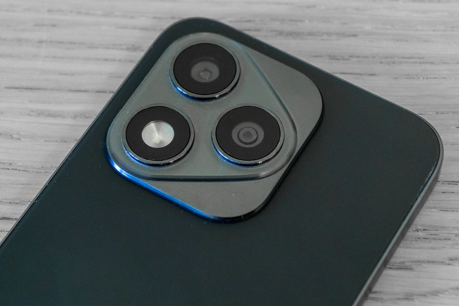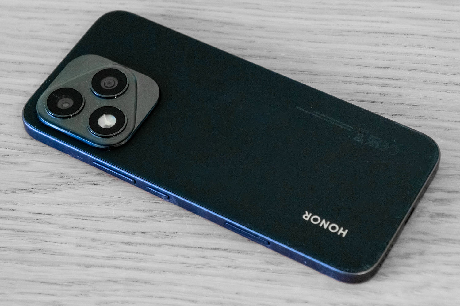 A hátlap azzal együtt iPhone koppintás, hogy a négyzet alakú kameraszigetre egy háromszög minta is került. Két kameramodul van (ezekről később), a harmadik „helyre” pedig a LED-es segédfény került. Ezt leszámítva a hátlap teljesen sík és puritán, egyedül a Honor felirat díszeleg rajta.