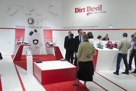 Két padlótisztító robot állt a nálunk kevésbé Dirt Devil pavilonjának központi részén.