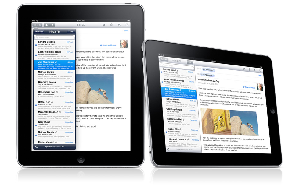 És hopp: megérkezett a tablet, iPad néven! Hát igen, úgy tűnik a német Media Markt twitter-bejegyzése mégsem tévedés volt, hanem elszólás? A készülék úgy néz ki, mint egy széthúzott iPhone, kezelői felülete is nagyon hasonló...