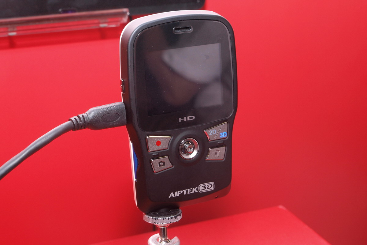 Ami igazán érdekes lett volna, az a 3D-s felvételkészítés, de ezt a területet csak nagyon kevés gyártó fedezte fel magának egyelőre. Az AIPTEK volt az egyik, a másik pedig a DigiLife; utóbbinál viszont nem voltak túl közlékenyek és még fényképeket sem készíthettünk a termékekről. A főleg „bulikamerákat” gyártó AIPTEK-nél az i2 nevet kapta a 3D-s modell (mint megtudtuk, azért mert i2 =„eye-two”, azaz két szem [img]/files/images/smiley/face-smile.png[/img]). A kamerára két fix fókuszú objektív (min fókusztávolság: 1 méter) került, a másik oldalon egy 5 Mpixeles CMOS érzékelővel. Az i2-vel 2592×1944 pixeles állóképet és 1280×720@30fps-es mozgóképet készíthetünk 3D-ben, MP4 illetve JPEG formátumban.