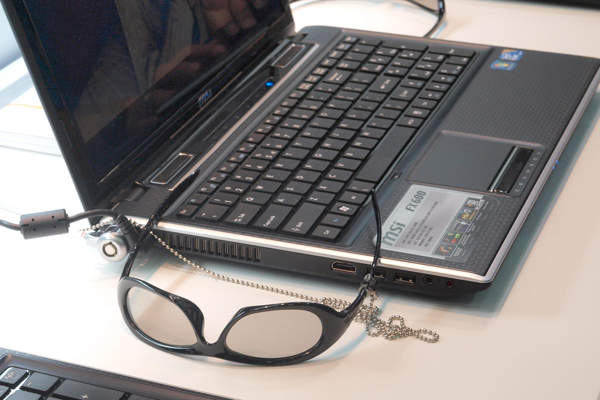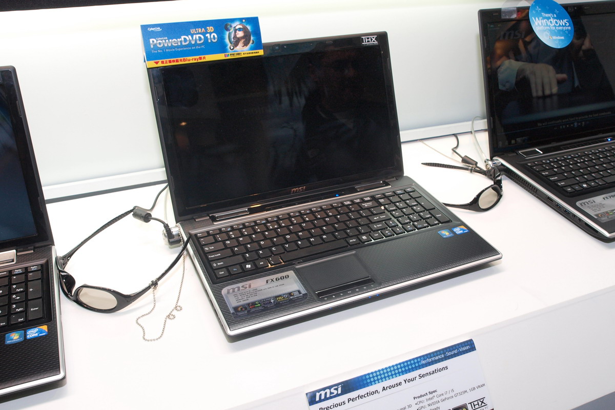 Azért szerencsére voltak más 3D-s kütyük is. Még mindig az NVIDIA 3D VISION rendszerénél maradva az MSI (és az Acer) bemutatták a világ első 3D-s all-in-one gépét – persze ettől sem kell elájulni, ugyanaz a rendszer, ugyanaz a szemüveg, csak éppen más formátumú gépbe került be. Ennél egy fokkal érdekesebb volt az MSI és a Gigabyte 3D-s notebookja (MSI FX600 3D és Gigabyte Q1585), amelyek passzív szemüveggel működnek, felbontásuk pedig 1600×900 pixel 2D módban, és 1600×450 pixel 3D módban.