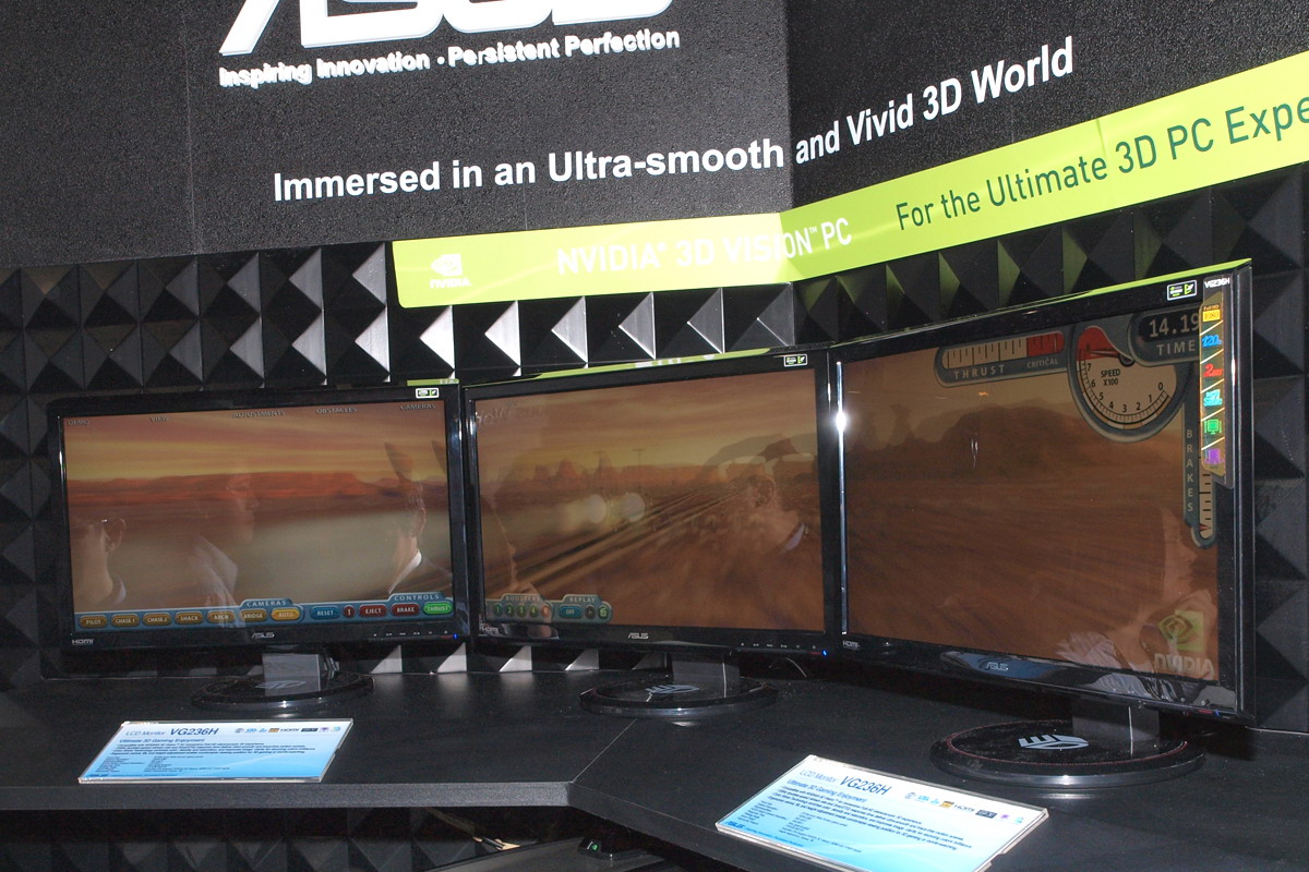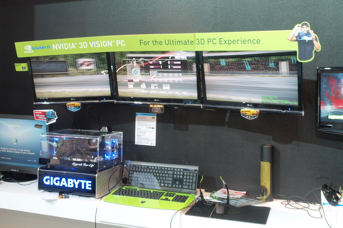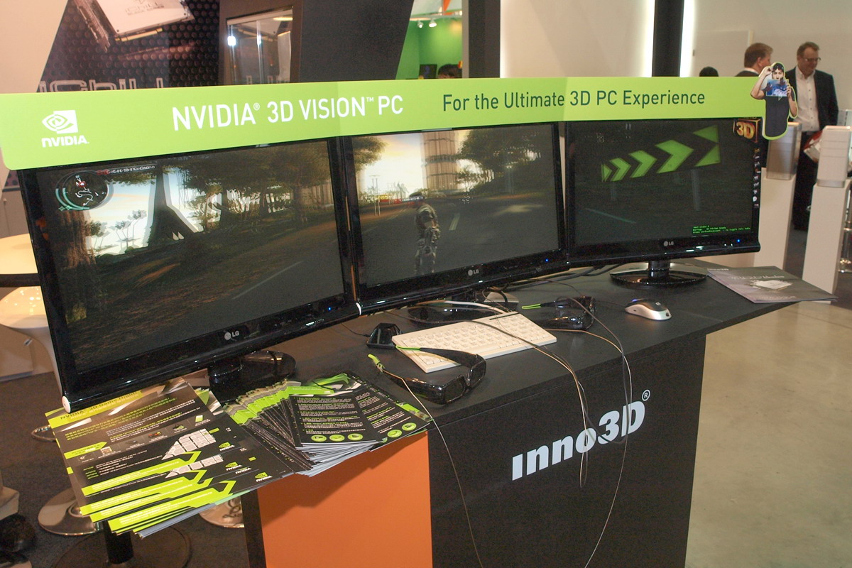 A Computexen főleg az aktív szemüveges megoldások voltak előtérben, erről rengeteg képet tudnánk mutatni, de igazából teljesen felesleges, minden standon ugyanazt látni: NVIDIA 3D VISION. A gyártók, így például a Gigabyte, az ASUS, az MSI, a Giada, az Inno3D és még sokan mások, kiállították az NVIDIA 3D VISION-t. Na bumm. Ez már kint volt tavaly is, sőt már teszteltük is. Ami új és érdekes lehetett volna, az az ATI-féle 3D, ami kint volt ugyan az AMD-nél, de nagyon eldugták, nem is szívesen beszéltek róla – a FUSION volt most a fontos.