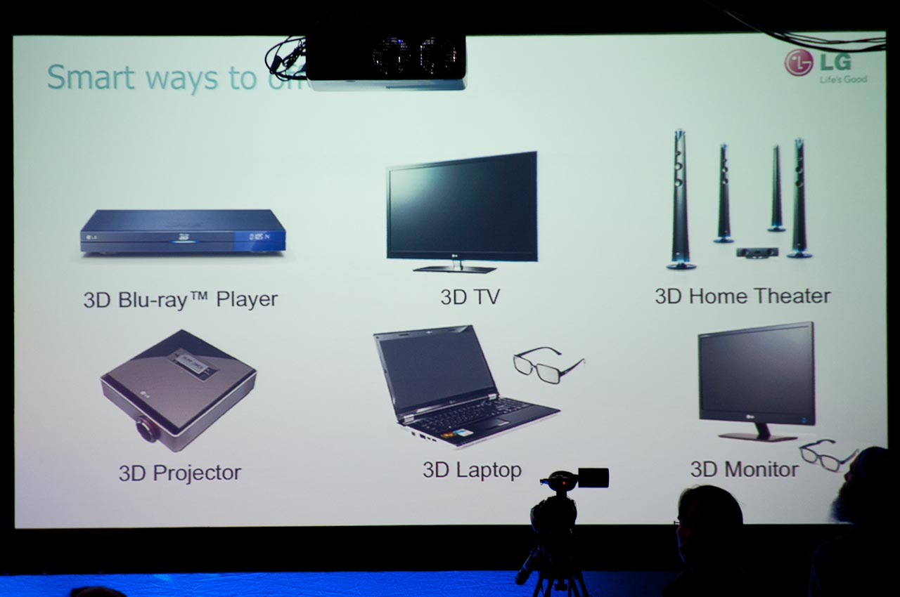 Mivel az LG azt elmúlt napokban szinte minden újdonságáról lerántotta a leplet, nem okozott igazán meglepetést, hogy a bemutatón a központba az egyre okosodó eszközök illetve a 3D kerültek, nem is annyira a konkrét termékeken, mint inkább a szolgáltatásokon volt a hangsúly. A tévék közül az itteni nevén LZ9700-ként nevezett 72 colos Full LED háttérvilágítású 3D tévé és az új, passzív megjelenítő, az LW6500 voltak a legérdekesebbek, illetve a majd 50 és 60 colos méretben megvásárolható PZ950-es széria, ami a plazmák között a csúcsot jelenti majd 2011-ben. Az LG emellett „megígérte”, hogy jön a 31 colos OLED és a 31 colos, szemüveg nélkül nézhető 3D tévé (bár ez utóbbi lehet, hogy nem 31 colos lesz, ez a rész nem volt teljesen egyértelmű). Összesen 13 sorozatban 31 LCD (kétharmaduk nano LED-es) és 6 sorozatban 12 plazmatévé érkezik 2011 folyamán.